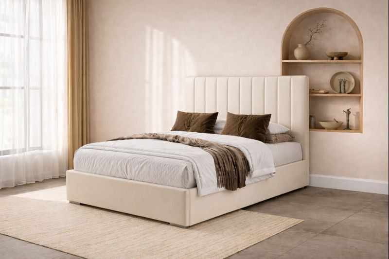 The Panelled Bed Frame is the perfect statement piece for customers who love clean lines, modern interiors, and a luxury boutique-hotel look. Designed with tall vertical panels and a sleek winged silhouette, this bed brings sophistication and structure to any bedroom.